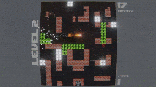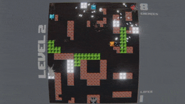The game is a loose remake of the NES classic Battle City. I rebuilt the mechanics from scratch, handling movement, shooting, collision, and physics-based interactions entirely on my own. This was not just a visual exercise. I was responsible for the full implementation, including gameplay programming and core systems.
